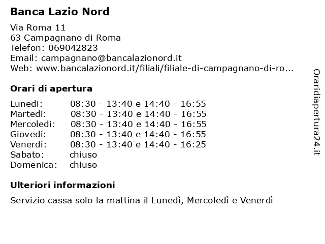 Orari di apertura Banca Di Credito Cooperativo Roma. Lunedi 0830 - 1330 1500 - 1545. Contatta Banca di Credito Cooperativo di Roma Agenzia 177 Torrice Viale Regina Elena 14 con orari indicazioni stradali dati di contatto. BancAnagni Credito Cooperativo Filiale di Roma Via Torre di Mezzavia. NUOVO SISTEMA INFORMATIVO.
