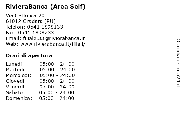 Banca di Credito Cooperativo di Gradara Scrl. Trova gli orari di apertura e di chiusura per Banca di Rimini a Via Cattolica 20 61012 Gradara Marche e controlla anche gli altri dettagli come ad esempio. Cattolica mare cattolica. Si segnala che presso le filiali di Agenzia di città Morciano di Romagna Corpolò Pietracuta Novafeltria Cattolica Diamante Gradara Gabicce Mare Padiglione Pesaro Repubblica Fanano e Riccione Diaz le Aree Self dedicate allutilizzo di ATM sono fruibili dalle ore 0500 alle ore 2400 7 giorni su 7. Orari di apertura Banca di Credito Cooperativo di Gradara Via Carducci 24 47841 Cattolica RN Numero di telefono Indirizzo Altre offerte nelle vicinanze Guarda ora.