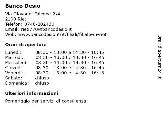 Banca Monte dei Paschi di Siena Via Isonzo 9 02100 Rieti RI. BANCO DI DESIO E DELLA BRIANZA - AGENZIA - 2 Via Giovanni Falcone - 02100 Rieti RI42401371285778. Banca Popolare Di Vicenza si trova a Via Fara Sabina 2 02100 Rieti RI Italy Si prega di contattare Banca Popolare Di Vicenza utilizzando le informazioni di seguito. Sacchetti Sassetti 21 con orari indicazioni stradali dati di contatto. Veneto banca - banca popolare di vicenza Si chiamano operazioni baciate.