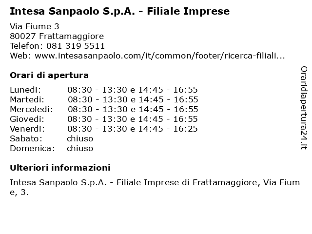 Banca bancomat intesa sanpaolo mutui credito bollettini assicurazione per la. Tag di ricerca per Intesa Sanpaolo. Gli orari di apertura vanno al mattino dalle 0830 alle 1300 e al pomeriggio dalle 1415 alle 1655. Lestensione viene incontro soprattutto ai lavoratori che solitamente devono richiedere ore di. Mappa numero di telefono sito web.