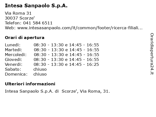 Questo sito utilizza anche cookie di profilazione al fine di inviare comunicazioni pubblicitarie personalizzate e consente anche linvio di cookie di terze parti. Come le altre la Banca Intesa è aperta in generale cinque giorni su sette dal lunedì al venerdì. Gli orari di apertura vanno al mattino dalle 0830 alle 1300 e al pomeriggio dalle 1415 alle 1655. Lestensione viene incontro soprattutto ai lavoratori che solitamente devono richiedere ore di. Orari di apertura Intesa Sanpaolo Corso Della Vittoria 60 37045 Legnago Numero di telefono Indirizzo Altre offerte nelle vicinanze Guarda ora.
