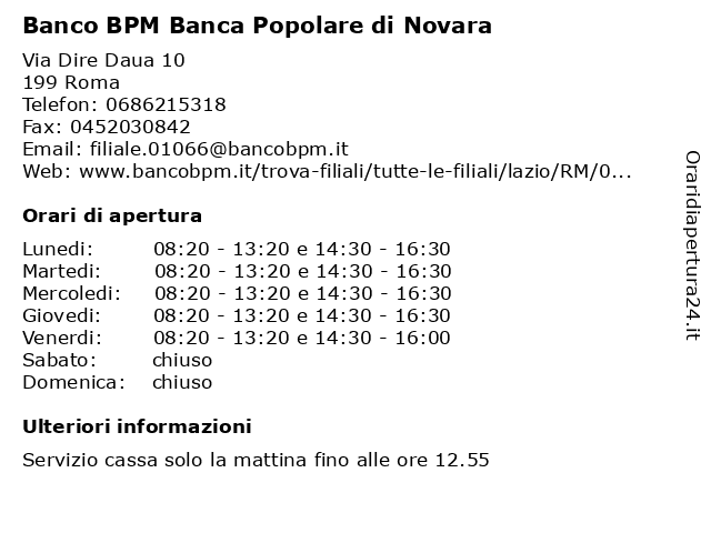 Il telefono de loficina diretto é 0255012416 come il. Le banche presenti a Foggia Provincia di Foggia - Puglia. Part Time e Nuovo Orario Filiali Nessun obbligo di variazione dellorario di lavoro. Indirizzo numero telefono e orario della filiali Banco BPM 01613 in Via Fontana 22. Contatta Banca Popolare di Milano Pegognaga PZza Matteotti 46 con orari indicazioni stradali dati di contatto.