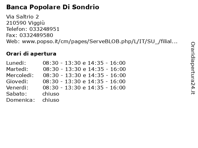 Contatta Banca Popolare Di Sondrio Viggiù V. Cercate in Infobel altre aziende nella categoria Banche a Sondrio. Postacertificatapecpopsoit Iscritta al Registro delle Imprese di Sondrio al n. Trovate recensioni orari di apertura foto e video su Banca Popolare Di Sondrio - Banche a Sondrio. 99 con orari indicazioni stradali dati di contatto.